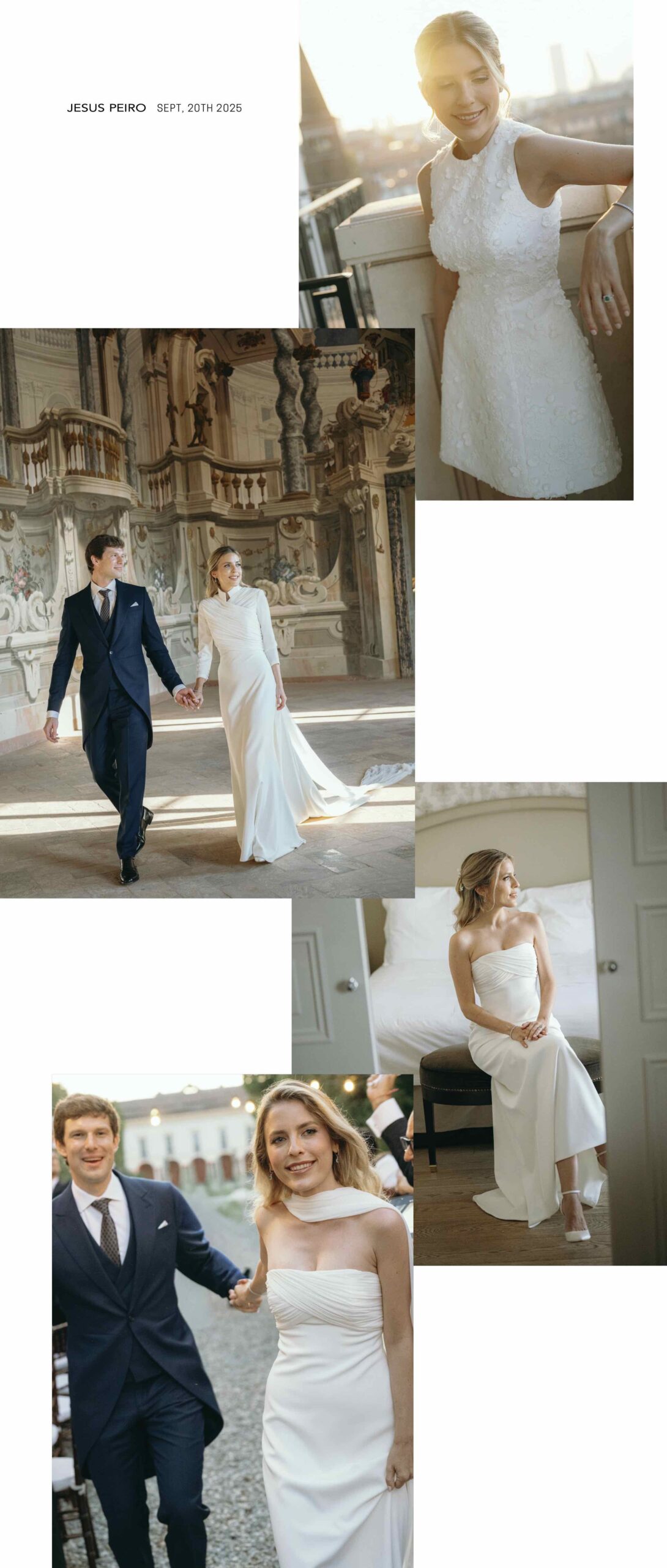 Bei JESUS PEIRO erzählt jedes Kleid eine Geschichte – die der Schwestern Cebrián ist eine Geschichte von Verbundenheit, Tradition und geteilter Emotion. Die Hochzeit von Carlota, gefeiert in Mailand, bot die perfekte Bühne, um den Wert unseres Ateliers zu zeigen: die exklusive Ausstattung sowohl der Braut als auch ihrer Schwester Natalia in jedem Moment der Feierlichkeiten.