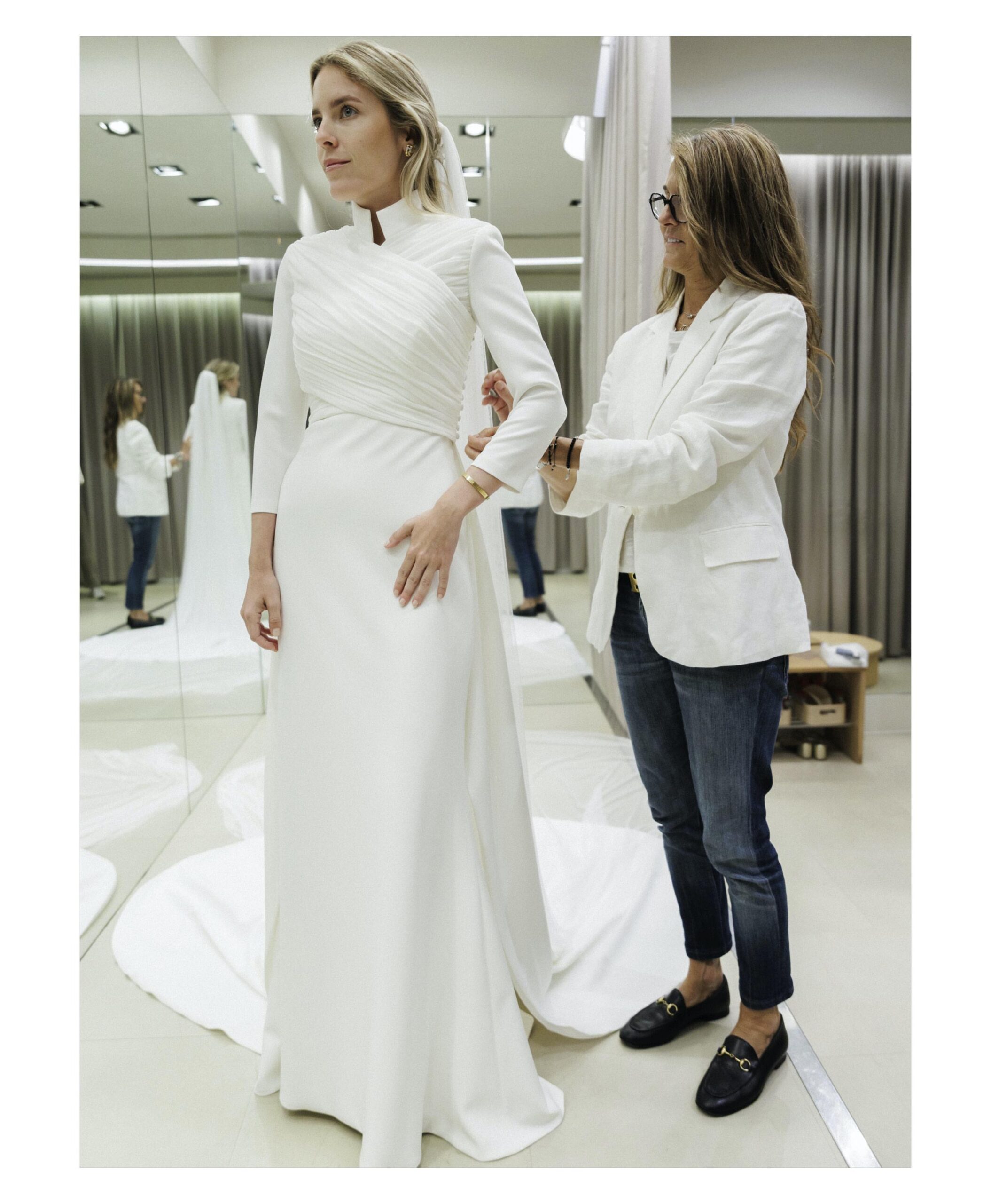 Nur 24 Stunden nach der ersten Anprobe kehrte Natalia zur finalen Anpassung zurück. Ihr enger Zeitplan machte den Prozess zu einem Wettlauf gegen die Zeit. Zwischen Aufregung und Feinarbeit arbeitete das JESUS PEIRO-Team unermüdlich, um das Kleid rechtzeitig fertigzustellen.