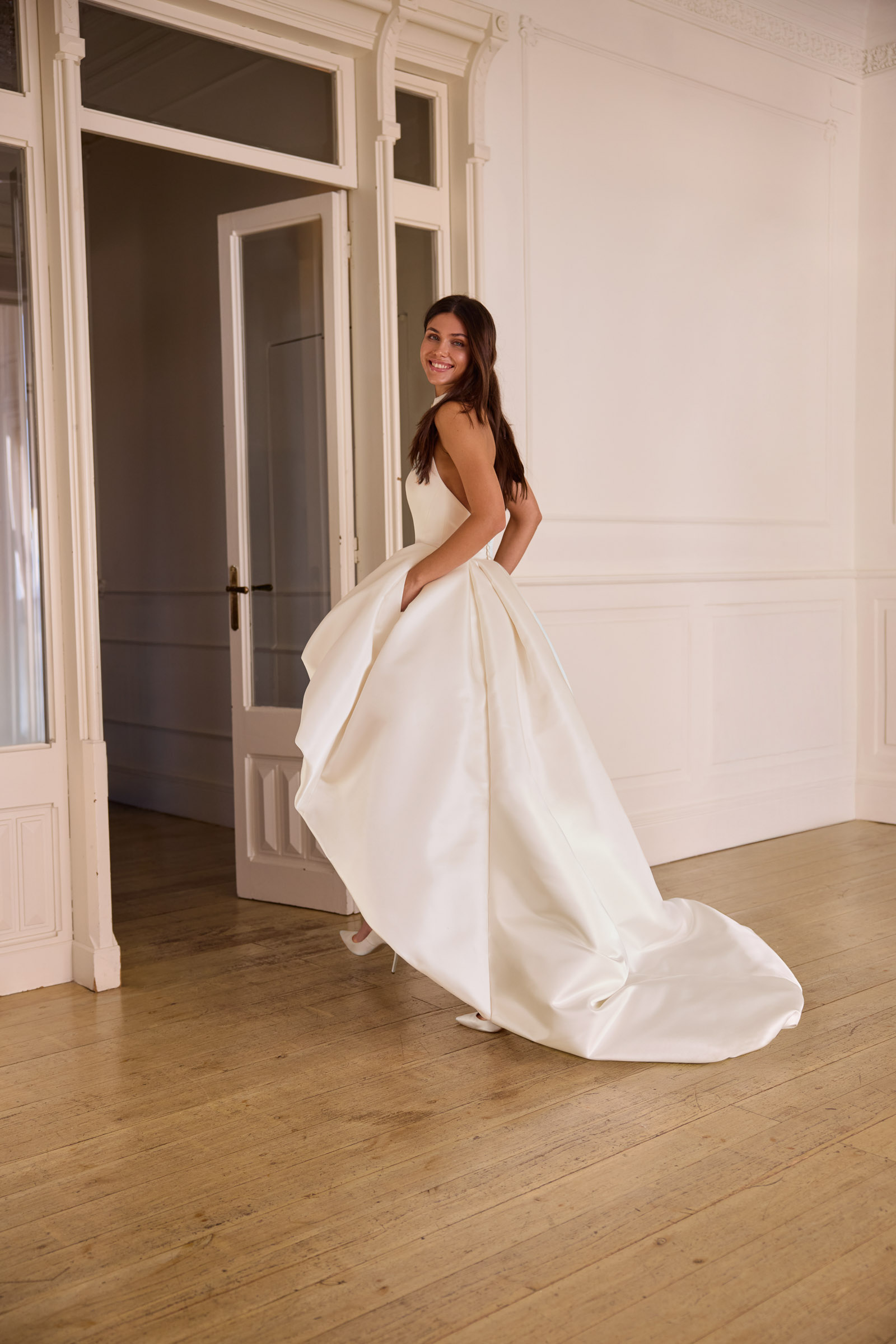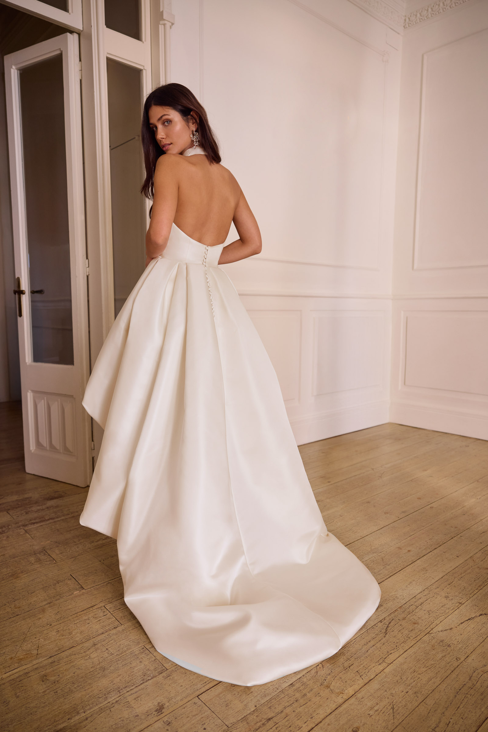 Halter mit Puffvolumen aus Satin.