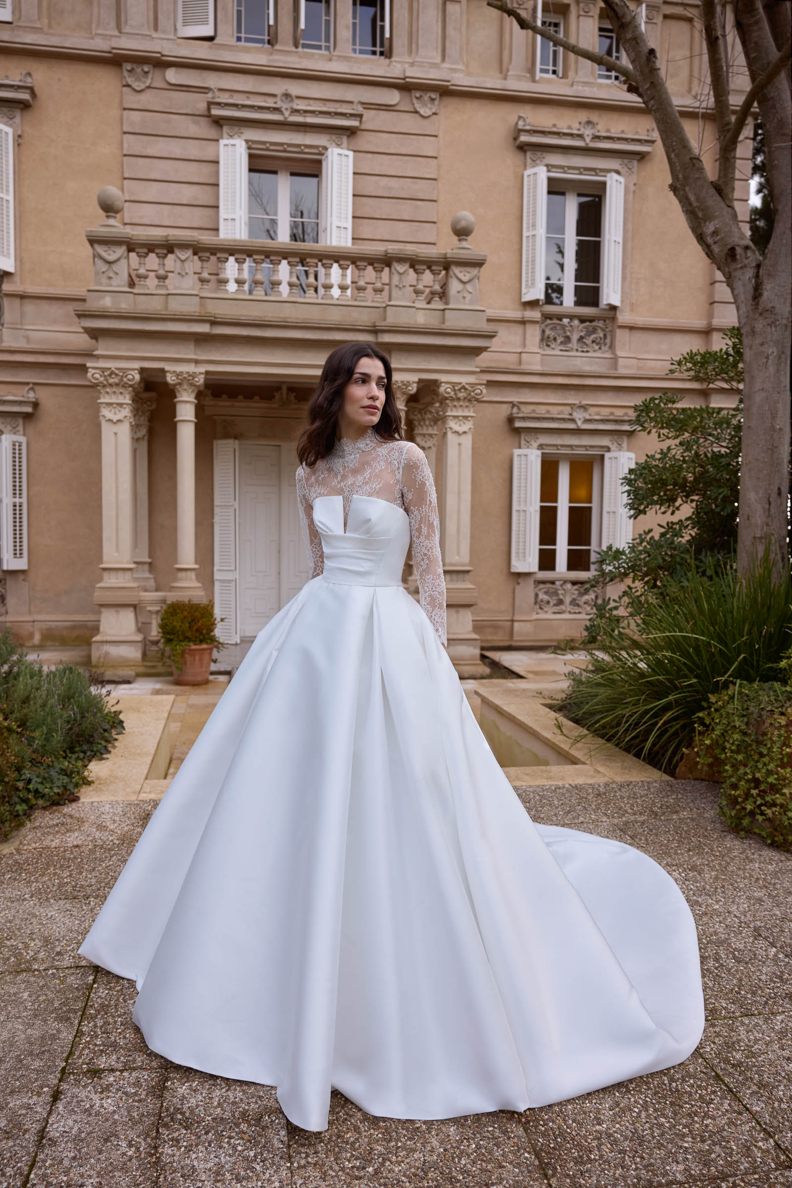 Full volume dress with Chantilly under bodice