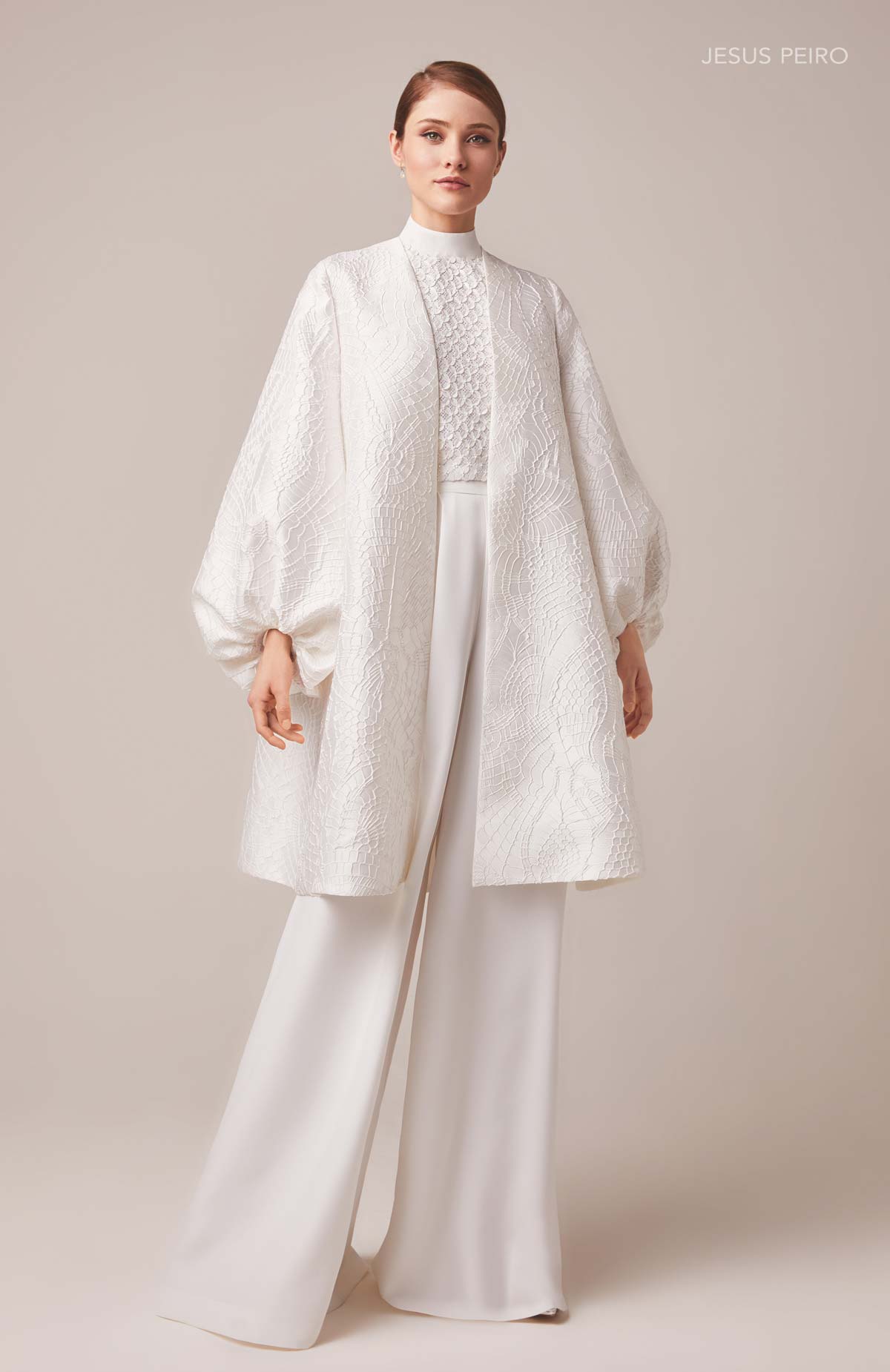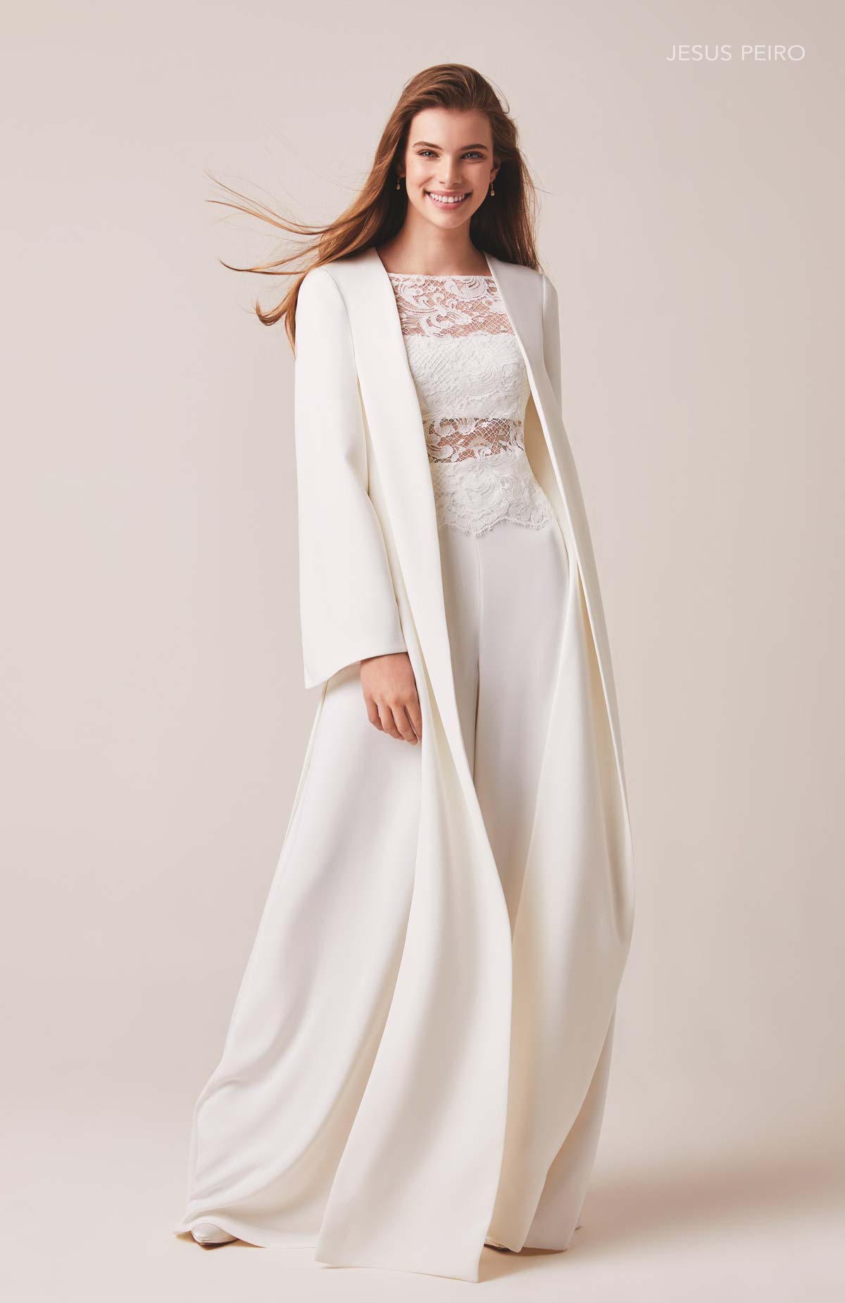 En nuestra Colección Cala 2020 existen varias alternativas de traje de novia pantalón, ya sea en mono pantalón o en pantalón suelto combinable con diferentes tops. De este modo tú puedes crear tu propio estilismo, combinando tops, abrigos, pantalones, chaquetas…